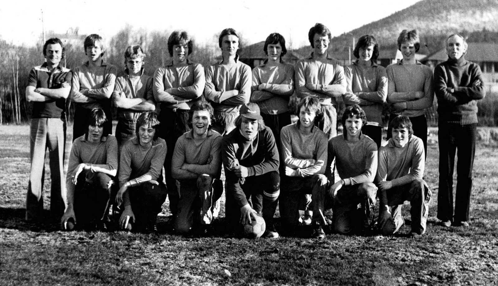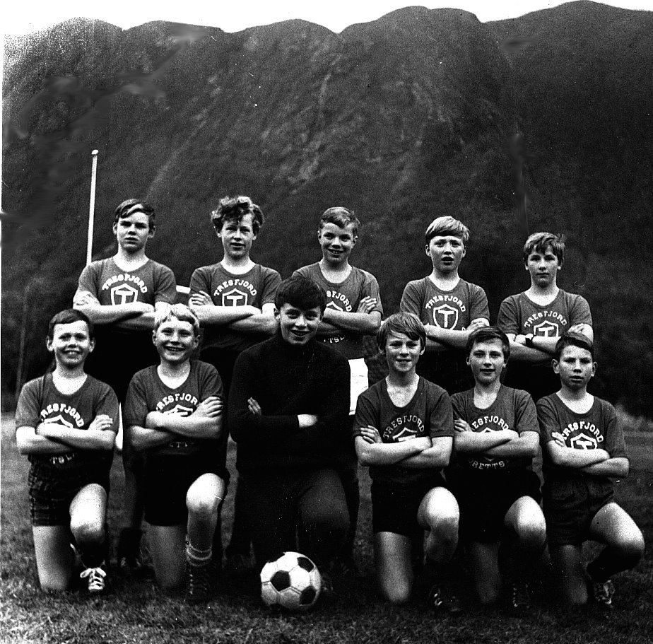 Tekst fra Tresfjord museum på Facebook: Et guttelag på fotballbana på Tresfjord stadion. Det står Tresfjord på t-skjortene, så dette er før klubben bytta til navnet Varfjell Det var i 1968 Vestnes og Tresfjord gjekk sammen i ein ny klubb. Dette er 12-14-laget som ble kretsmestere, og dei slo Molde FK i begge sluttspillkampene. Mange av disse spillerne ble dominerende på A-laget snart. Bjarne spilte 333 kamper og scora 185 mål. Gunnar hadde 319/6, Roger 291/19. Peder Arne og Arne gjorde seg mer kjent innen friidrett. Peder Arne var forresten den første til å klare gullballen, som hang høgt.