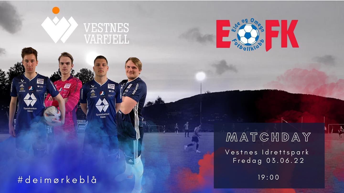 Ny heimekamp i 4. divisjon fredag når Eide og omegn kjem på besøk. Heimelaget bør vere ivrige etter å rette opp det svake resultatet frå forrige kamp. Også gjestane gjekk på eit heimetap då, 1-2, mot Træff 2, men greide sterke 4-4 borte mot KBK 2 i runden før. Eide har forsterka laget kraftig i forkant av denne sesongen, og blir ei tøff nøtt. For Vestnes Varfjell er det viktig å plukke poeng framover for å unngå å hamne i den verste botnstriden. Tabellen for 4. divisjon har delt seg der dei fire første laga har rykka i frå, medan det skil få poeng frå 5. til 12. plass.