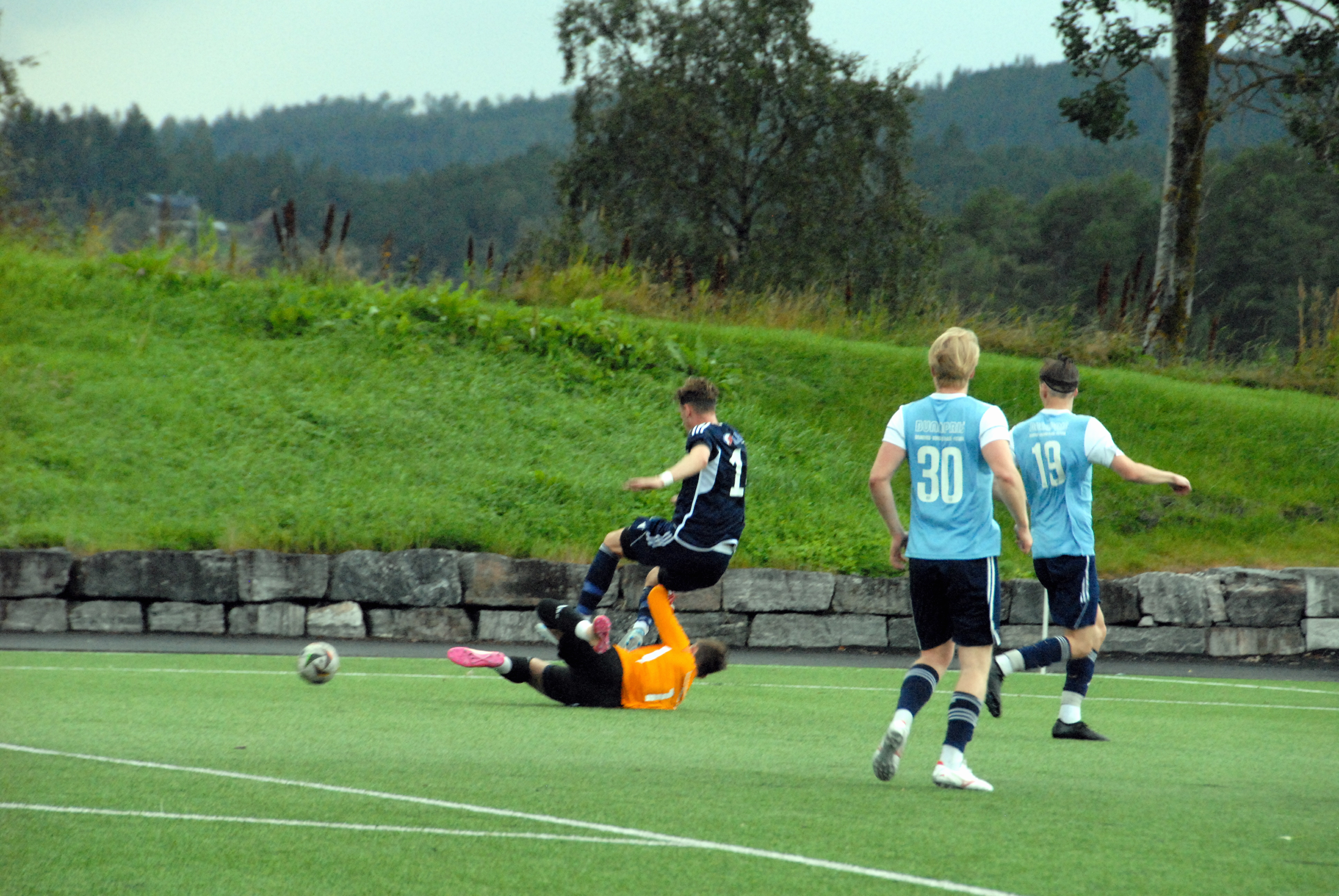 Då var det framleis ti minutt att, pluss overtid. No hadde også himmelen opna sine sluser. Gjestane kom i angrep etter angrep med ein mann mindre, men dette var ein kamp heimelaget skulle vinne.