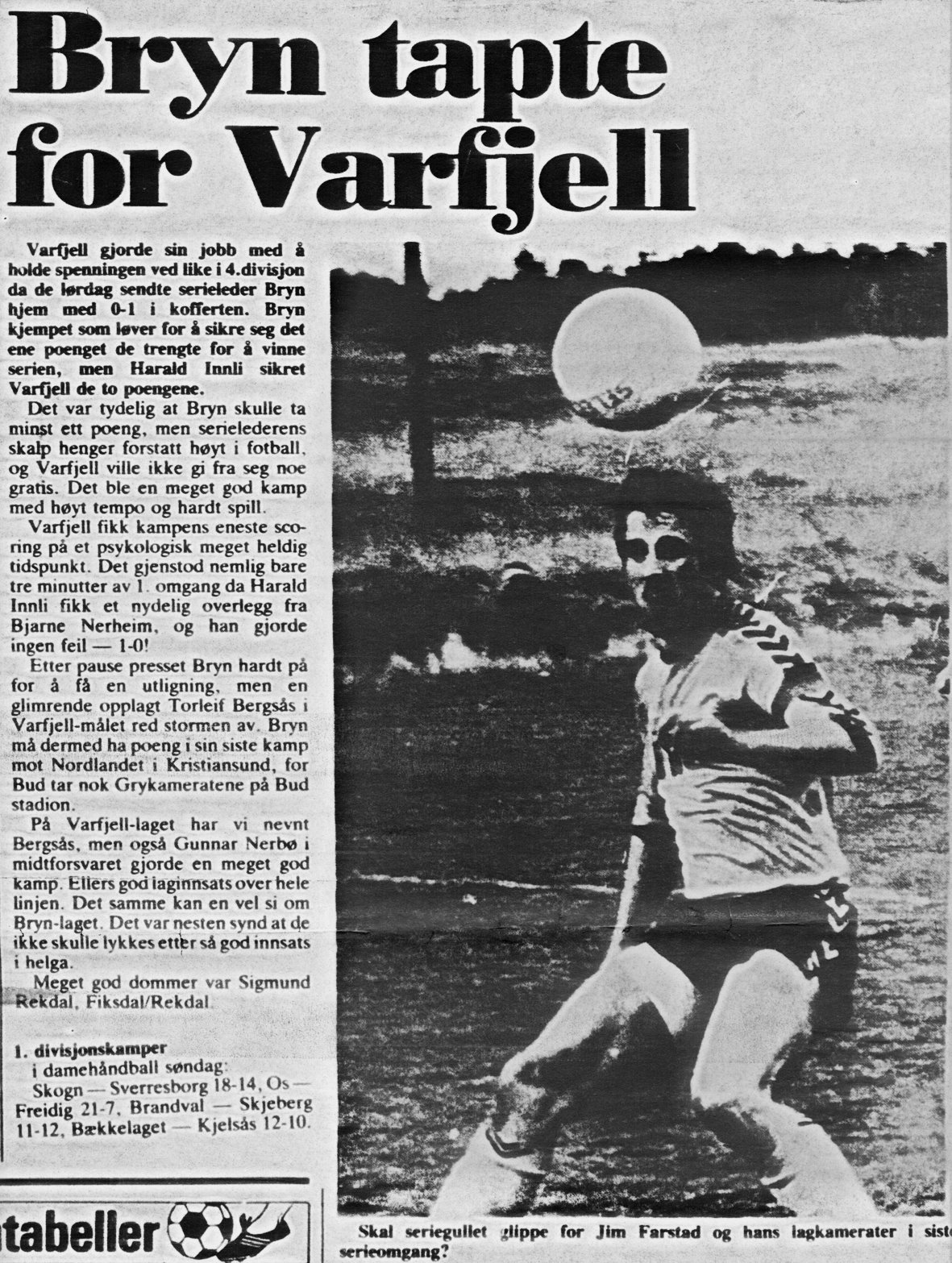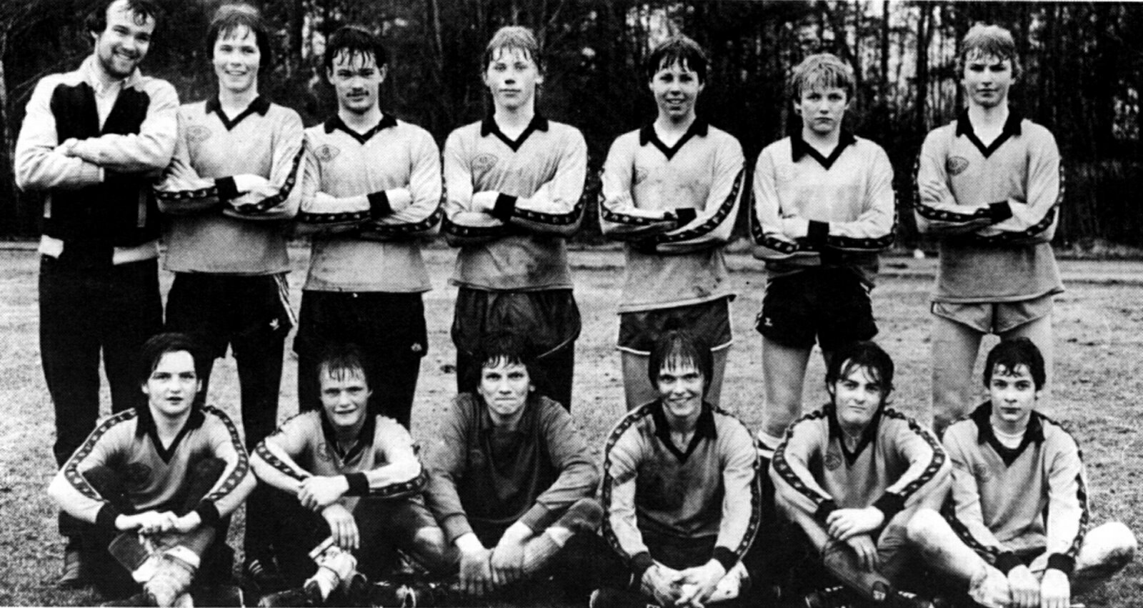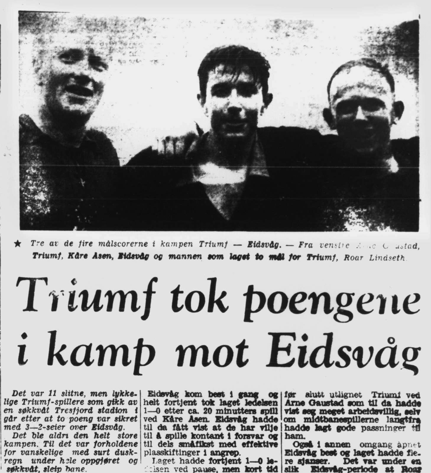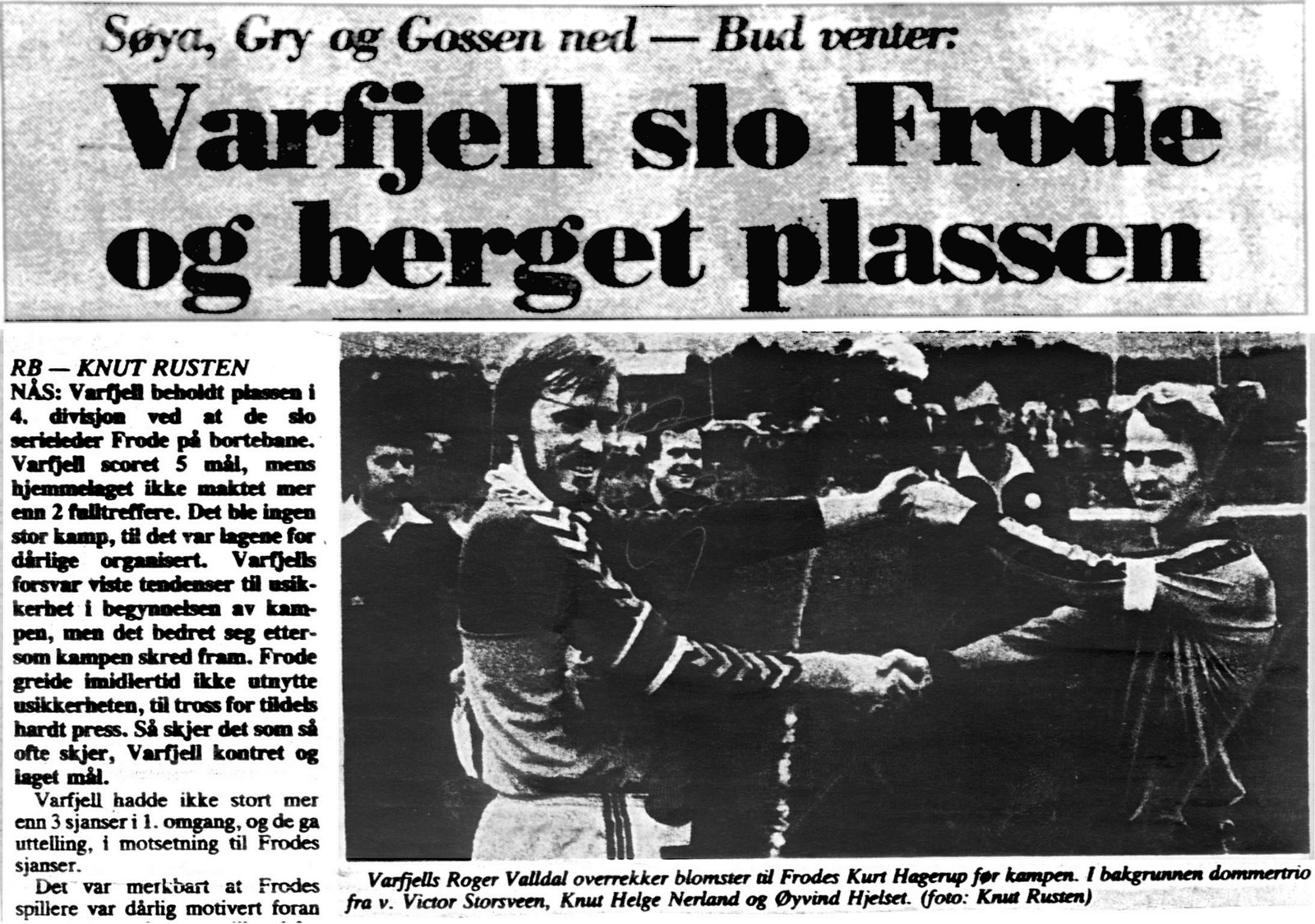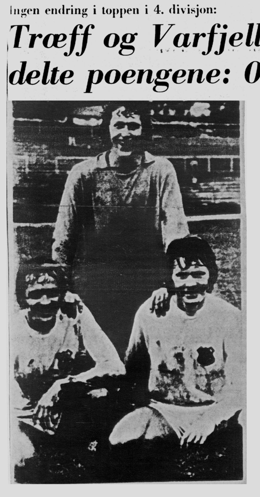 Tekst fra Tresfjord museum på Facebook: Et guttelag på fotballbana på Tresfjord stadion. Det står Tresfjord på t-skjortene, så dette er før klubben bytta til navnet Varfjell Det var i 1968 Vestnes og Tresfjord gjekk sammen i ein ny klubb. Dette er 12-14-laget som ble kretsmestere, og dei slo Molde FK i begge sluttspillkampene. Mange av disse spillerne ble dominerende på A-laget snart. Bjarne spilte 333 kamper og scora 185 mål. Gunnar hadde 319/6, Roger 291/19. Peder Arne og Arne gjorde seg mer kjent innen friidrett. Peder Arne var forresten den første til å klare gullballen, som hang høgt.
