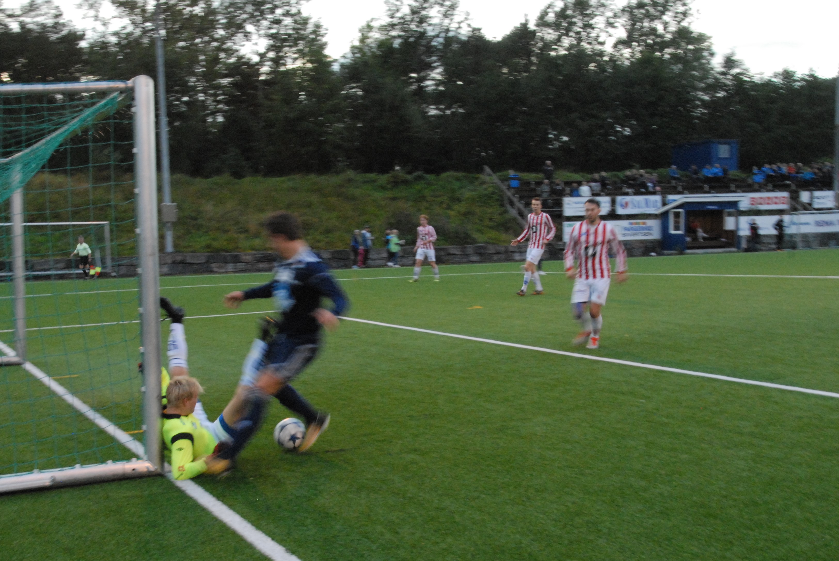 Innbyttar Audun Sørseth, kjent som "Lord Sørseth" etter deltaking i "Paradise Hotel", fekk lov til å ta straffen. Keeper Fredrik Bergslid gjekk til rett side og var på ballen, men den rulla over streken. AK sto på som heltar for å sikre alle tre poenge, trenar Lasse Olsen, med mykje eliteserieerfaring frå mellom andre Strømsgodset og Aalesund, sette innpå seg sjølv for å hjelpe til. Heimelaget hadde nokre forsøk på slutten, mellom anna på ein corner der ballen vart heada inn att i feltet, men avslutninga frå Eilling Olafsen gjekk utanfor. Også Tommy Kanishi hadde ein markkrypar like til side for stolpen, mendan Svein Erik Male nesten gjorde godt for straffesparket då han vart akkurat for sein på eit framspel to minutt på overtid.
