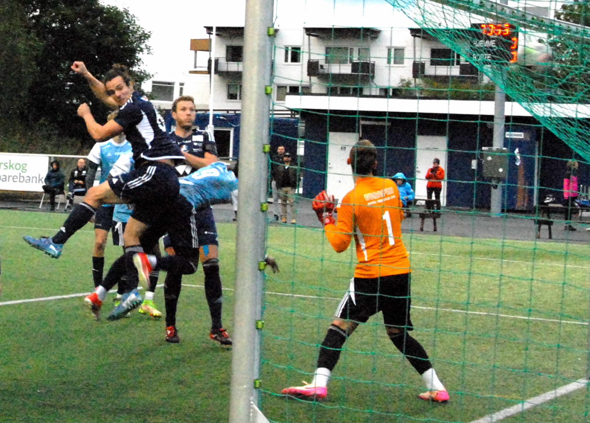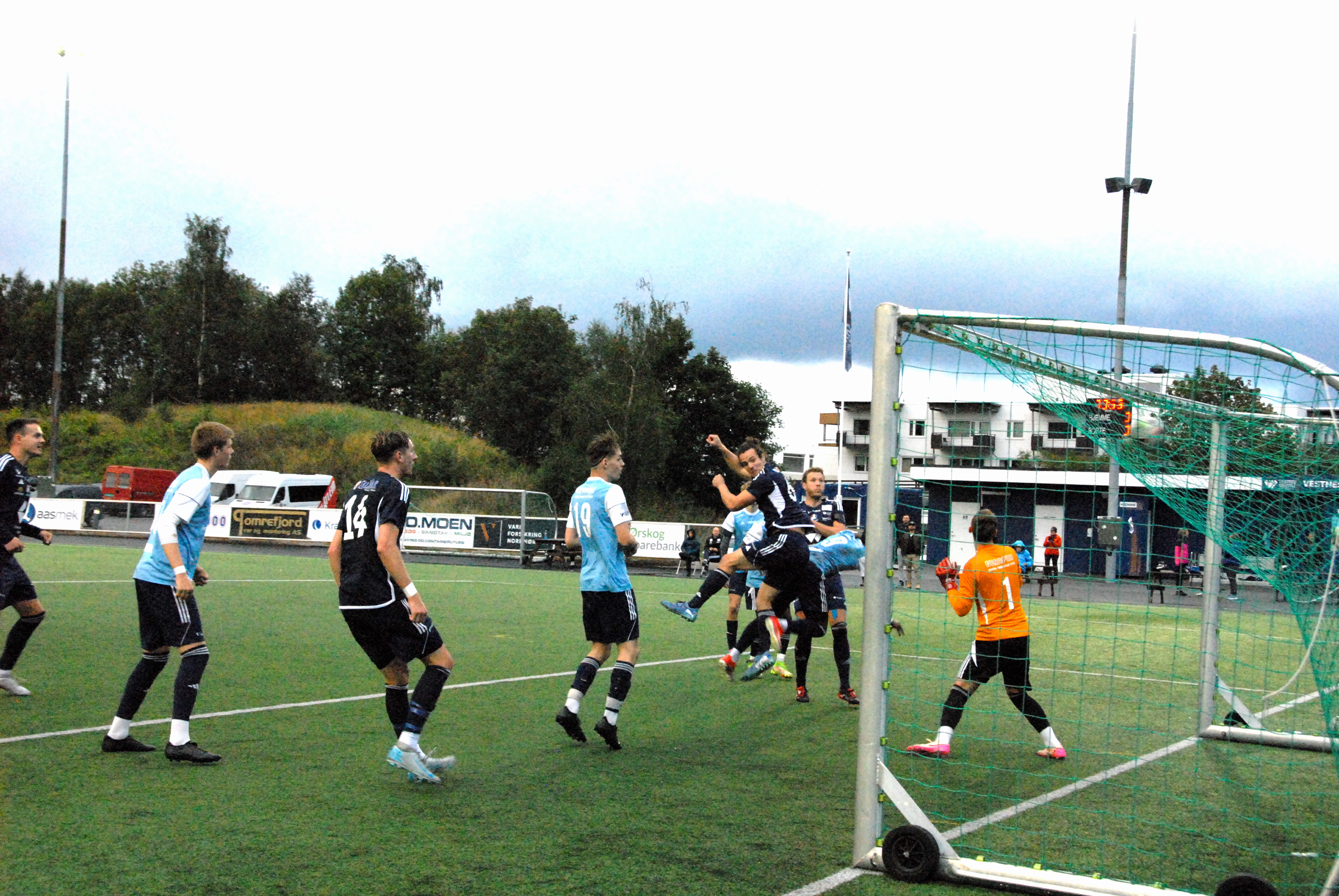 Då var det framleis ti minutt att, pluss overtid. No hadde også himmelen opna sine sluser. Gjestane kom i angrep etter angrep med ein mann mindre, men dette var ein kamp heimelaget skulle vinne.