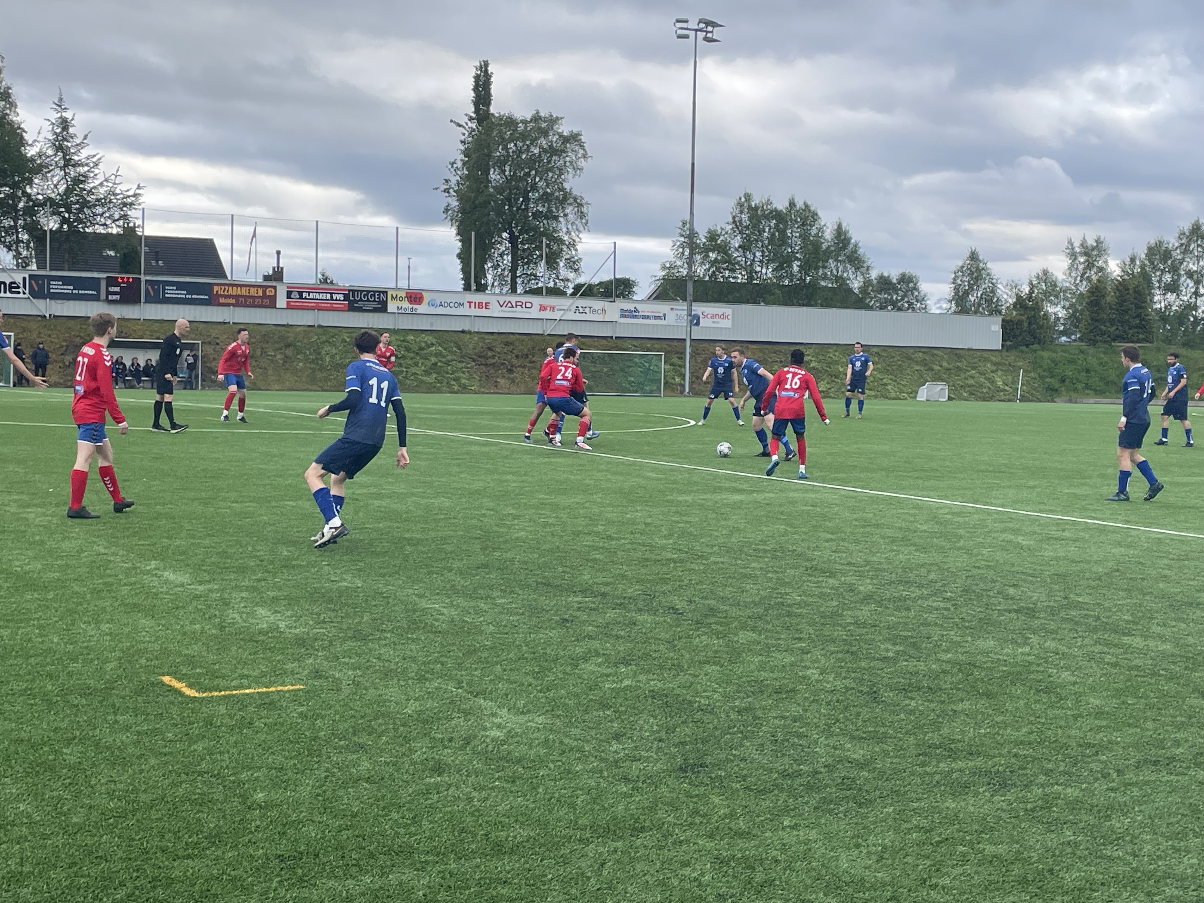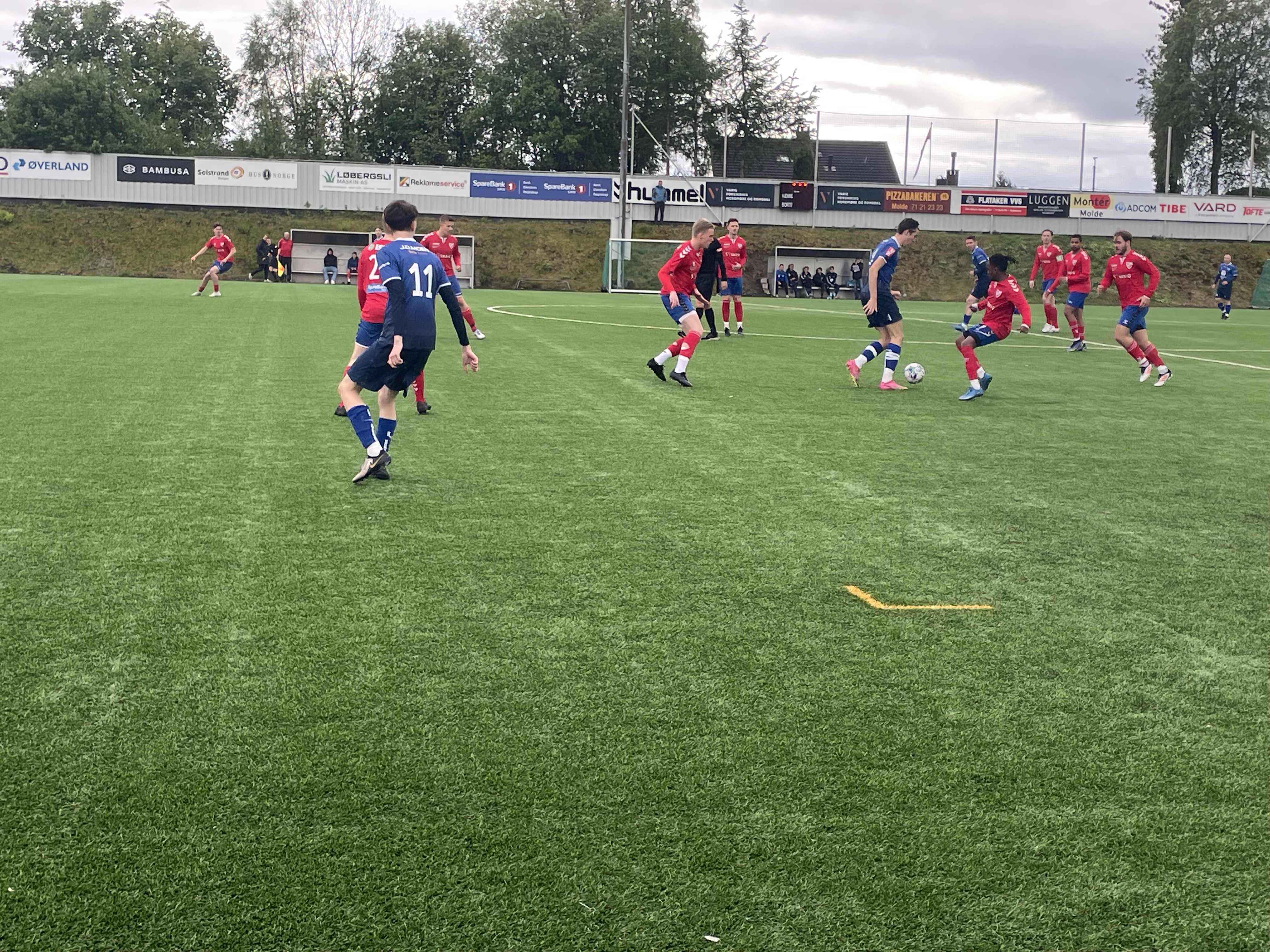 I ein jamn 1. omgang var Adrian Voldseth forskjellen på laga. Han skåra først 0-1 på ein lekker lobb før han curla ballen i lengste hjørne til 0-2.